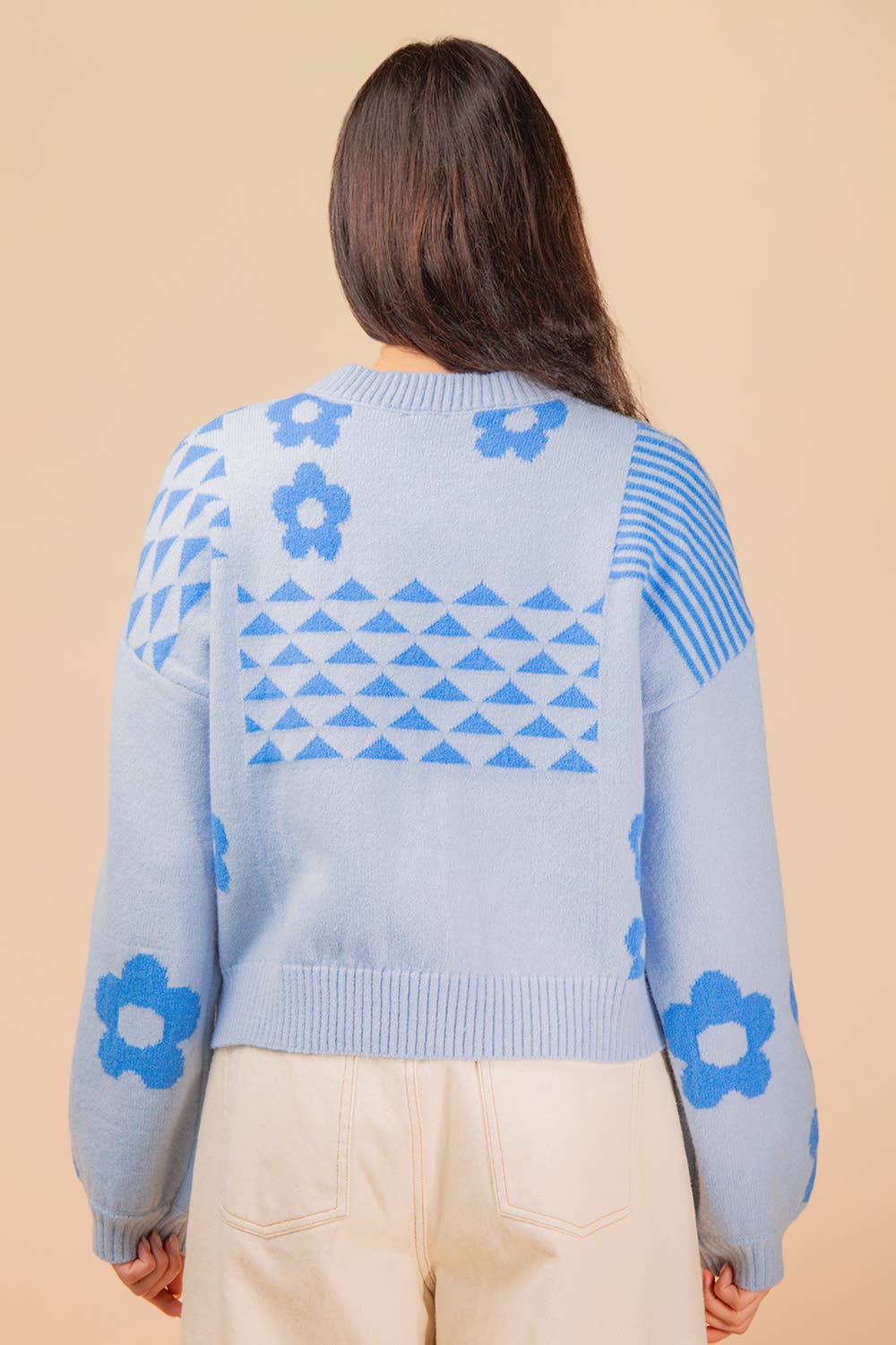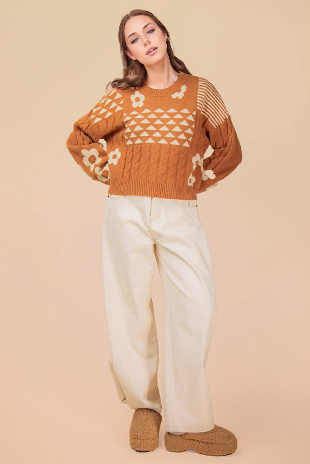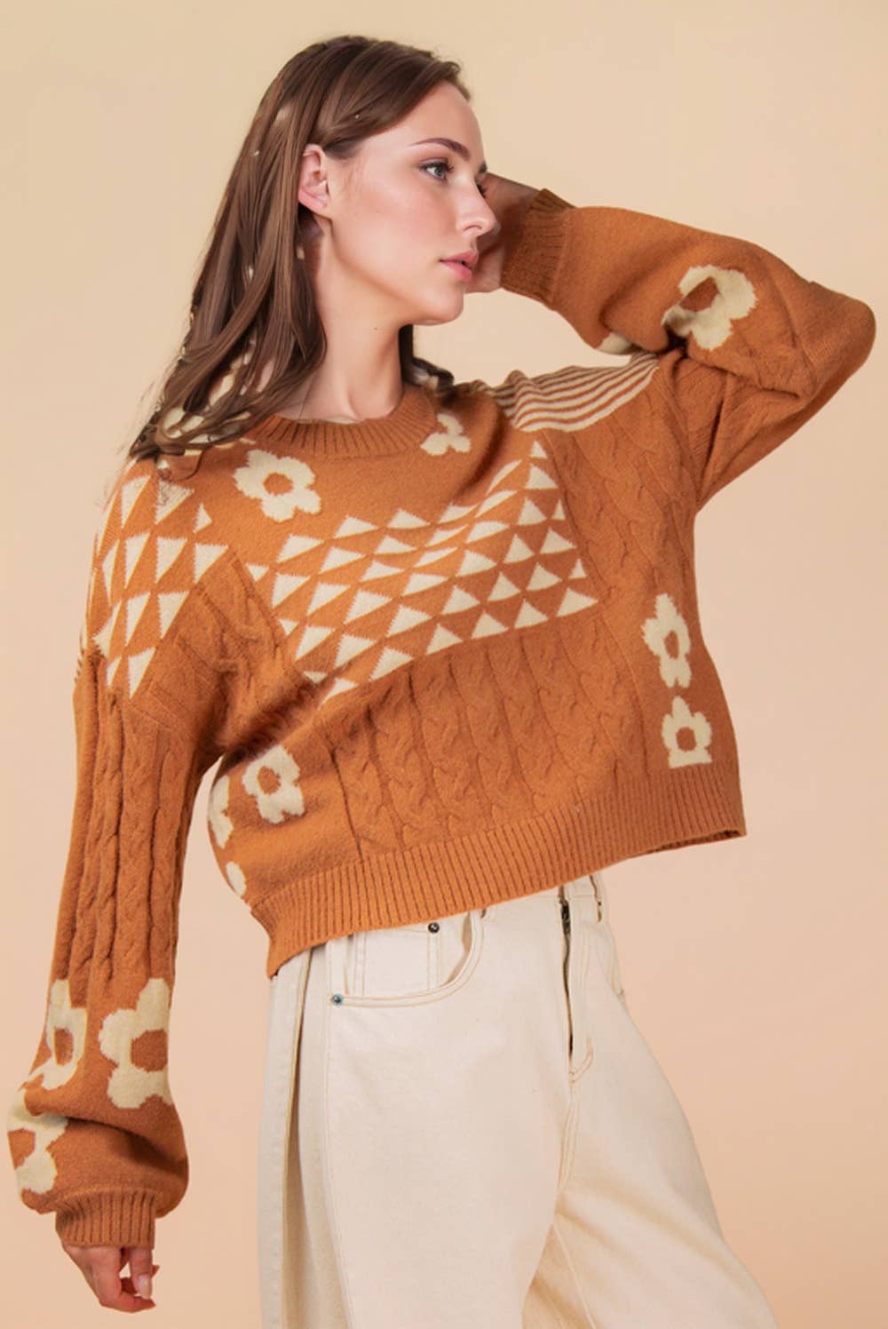 - Oversized Balloon Sleeve Graphic Knit Sweater Top