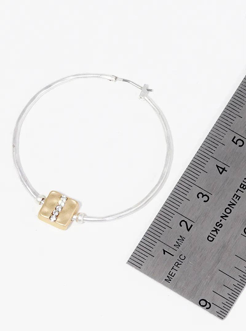 45mm Textured Metal Crystal Pave Square Accent Hinged Hoop Earrings