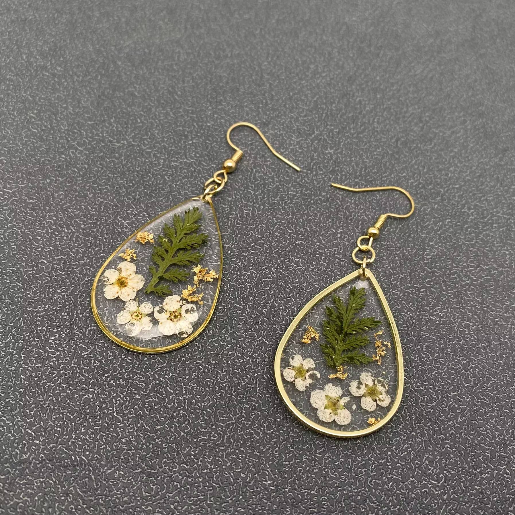 Dried Flowers Floral Drop Shaped Dangle Earrings - PDF