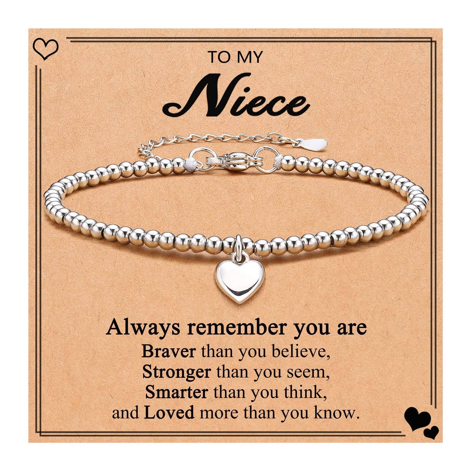 Heart Charm Stainless Steel Bracelet with Blessing Cards