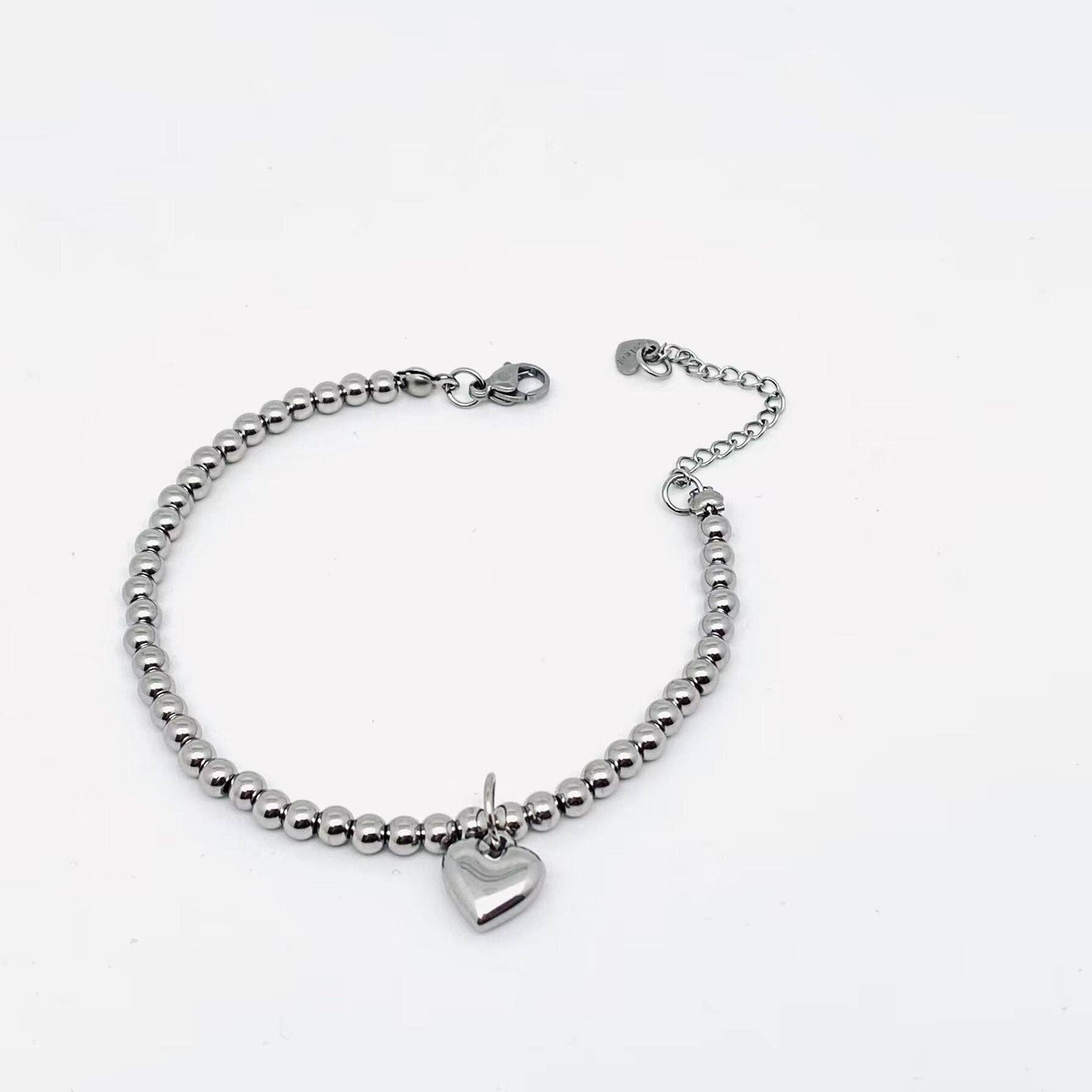 Crafted with precision, this bracelet features a charming heart-shaped pendant made of stainless steel.