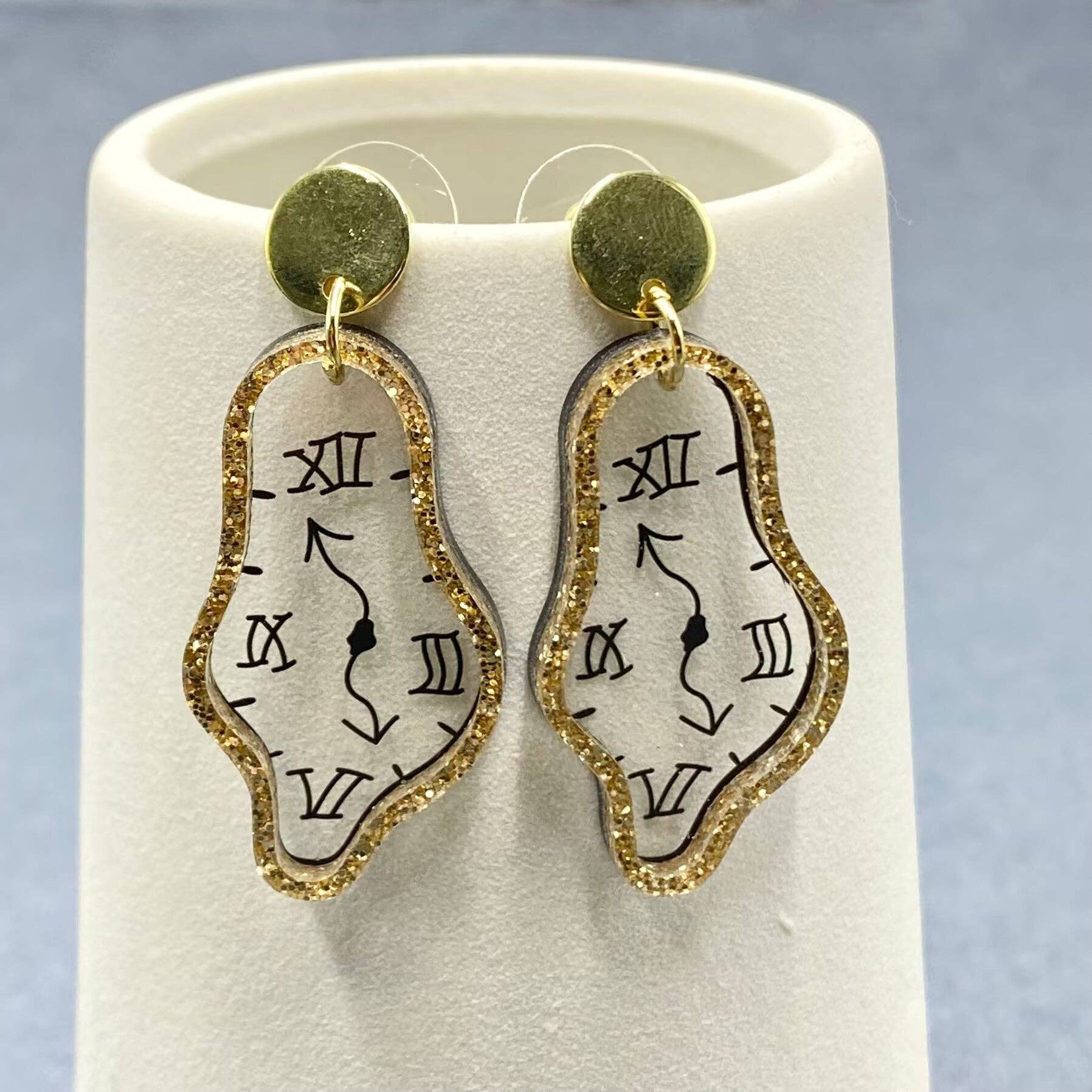 Time Flies Geometric Acrylic Clock Dangle Earrings